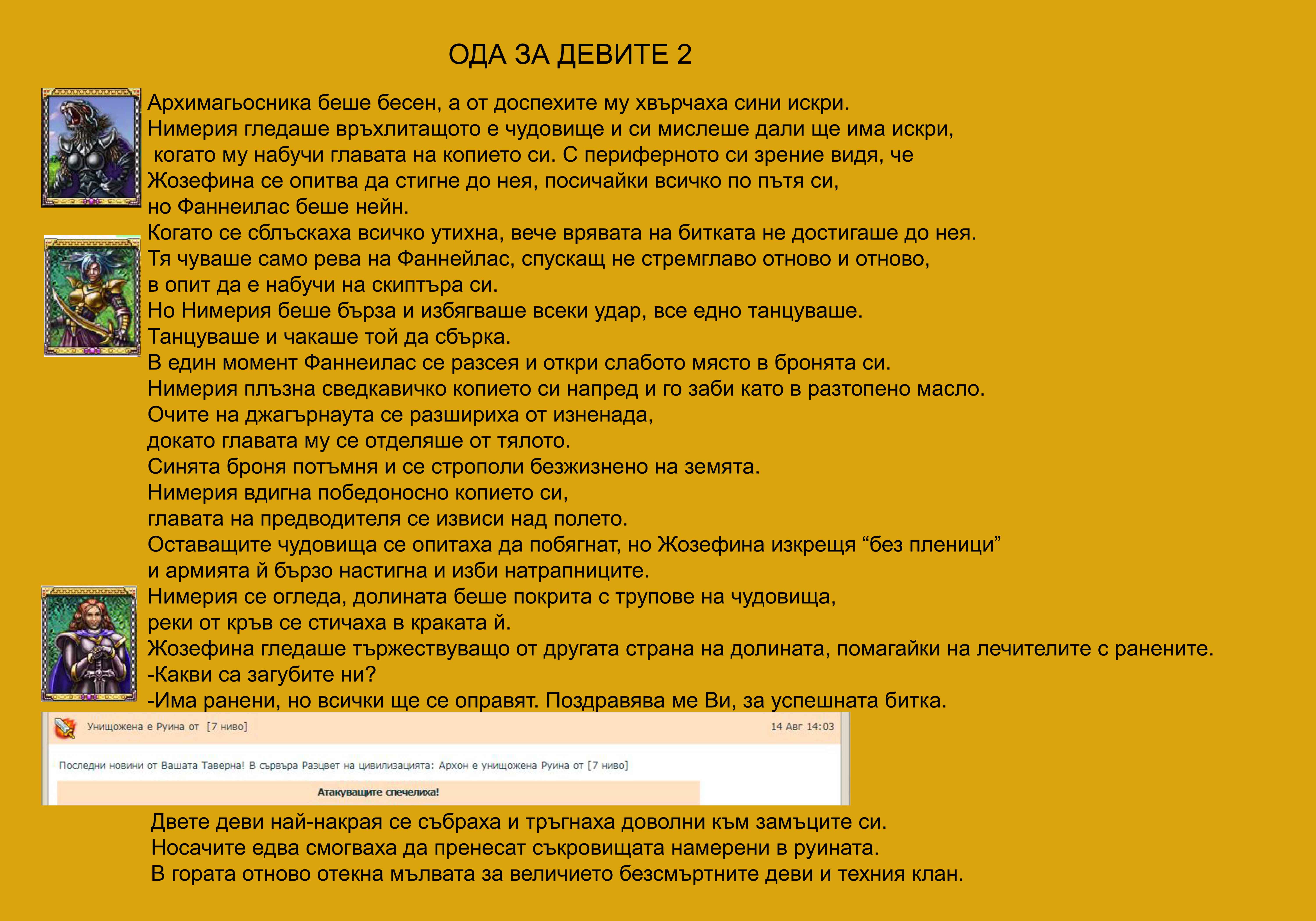 Така ... сега е време да Ви покажа картинка от битката, не че целия сървър вече не я знае, но все пак нали и аз трябва пак да и се порадвам, че не се знае дали ще ми се случи пак